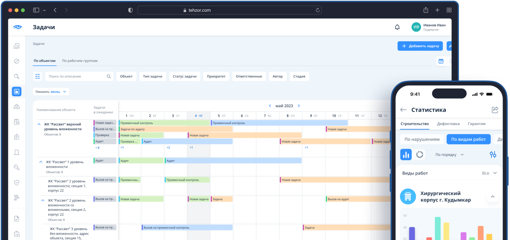 Для этого была добавлена шахматка для приемок работ и вкладка “Приемки работ” в карточке помещения.